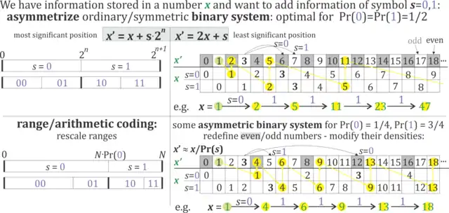 - J. Duda, Asymmetric numeral systems: entropy coding combining speed of Huffman coding with compression rate of arithmetic coding, arXiv:1311.2540, 2013.