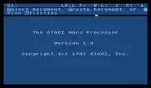 Atari Word Processor is a word processor program for the Atari 8-bit computers, announced by Atari, Inc. in January 1981 and shipped that summer. The program was powerful for its era, including numerous features like superscripts and two-column layouts. It was also quite complex, with a long list of control keys for basic operations and text-based menus for more complex ones. It left little memory free after loading, so longer documents had to be stored as separate files of about a page each and printing demanded a long re-formatting process as they were stitched together.