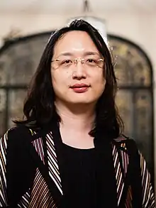 Audrey Tang (Chinese: 唐鳳; pinyin: Táng Fèng; born 18 April 1981) is a Taiwanese politician and free software programmer who has served as the 1st Minister of Digital Affairs of Taiwan from August 2022 to May 2024.[1] She has been described as one of the "ten greatest Taiwanese computing personalities".[2] In August 2016, Tang was invited to join Taiwan's Executive Yuan as a minister without portfolio, making her the first transgender person and the first non-binary official in the top executive cabinet.[3][4][5] Tang has identified as "post-gender" and accepts "whatever pronoun people want to describe me with online."[6] Tang is a community leader of Haskell and Perl and the core member of g0v.