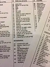 Each BATCO vocabulary card groups words needed for a particular function, so card changes are infrequent. Every vocabulary word on a card is assigned a two digit code. Some vocabulary card entries call for a fixed number of digits after the two digit code. For example, the code for ETA (estimated time of arrival) is followed by a four digit time of day. Each card in a set has a three digit number and there is always a code word on the card that means switch to card number xxx.[2]