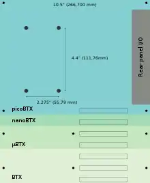 | microBTX | 10.5 × 10.4 in (266.70 × 264.16 mm) | 4 | |