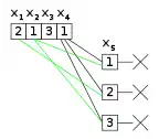 The smallest index (lowest the listing) for which evaluations are inconsistent would be a safe jump if were the only possible value for . Since every variable can usually take more than one value, the maximal index that comes out from the check for each value is a safe jump, and is the point where John Gaschnig's algorithm jumps.