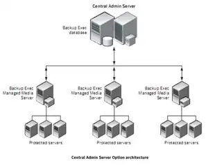 Large environments may contain multiple Backup Exec servers responsible for backing up many different client systems. Backup Exec servers in large environments can run independently of each other if each server is managed separately. Separate server management may not be an issue if there are only two or three Backup Exec servers, but it can become unwieldy as the environment grows. Backup Exec can centralize the management of multiple Backup Exec servers using an add-on option called the Backup Exec Central Admin Server Option (CASO). CASO ensures that everything throughout the network is protected by a single system that can be managed from one console[2] and also balances the workload across all Backup Exec servers in the environment.