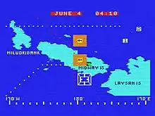The game is a turn-based strategy and focuses on naval battles during the Battle of Midway, which is initiated in response to the Japanese attack on Pearl Harbor.[1] The player commands three American task forces; two United States Navy forces and one United States Army Air Force unit, which are stationed on Midway Atoll. The objective of the game is to defeat three attacking Imperial Japanese naval forces.[2] Each American task force has an aircraft carrier, whereas the Japanese have four. The player begins the game with two American search aircraft used to locate and track the attacking Japanese forces.[2][3]