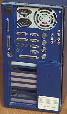 The BeBox is a discontinued personal computer from Be Inc., running the company's operating system, later named BeOS.[5] It has two PowerPC CPUs, its I/O board has a custom "GeekPort", and the front bezel has "Blinkenlights".