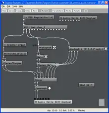 Bidule uses a modular structure based on a patch cord metaphor much like AudioMulch, Reaktor, Pure Data, and Max/MSP. Individual modules are called bidules (the Plogue web site states that the word "Bidule" is French for "thingy" or "gadget"). A set of bidules and connections is called a layout, and sub-patches called groups can be built within layouts and saved for use elsewhere. The program features real time audio, MIDI, Open Sound Control (OSC), and spectral processing. With other audio DAW software ReWire, Bidule can run as a ReWire mixer or device. Bidule can run standalone or as a VST, VSTi or AU plugin, and can host the same. ASIO/CoreAudio is supported for low latency audio. Bidule can use multithread processing, and there is a beta build for discrete processing. Parameters can be linked to MIDI or OSC input or to other module parameters. Over one hundred modules and groups come with the software, including modules that can perform high-level math on signals.
