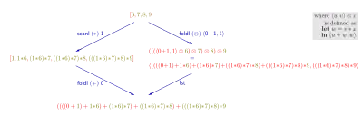 - ↑ Each expression in a line denotes an executable functional program to compute the maximum segment sum.