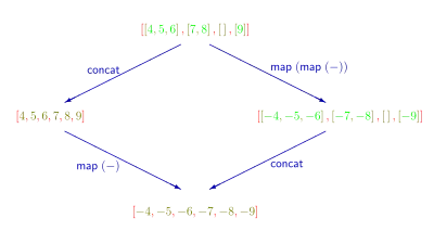 Using those two operators and the primitives (as the usual addition), and (for list concatenation), we can easily express the sum of all elements of a list, and the flatten function, as and , in point-free style. We have: