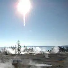 One physical basis of bloom is that, in the real world, lenses can never focus perfectly. Even a perfect lens will convolve the incoming image with an Airy disk (the diffraction pattern produced by passing a point light source through a circular aperture).[2] Under normal circumstances, these imperfections are not noticeable, but an intensely bright light source will cause the imperfections to become visible. As a result, the image of the bright light appears to bleed beyond its natural borders.