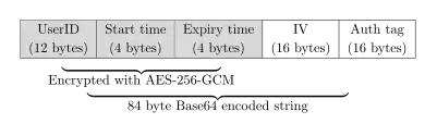 Once registered, users are provisioned Temporary IDs (TempID) uniquely identifying them to other devices. Each TempID has a lifetime of 15 minutes to prevent malicious parties from performing replay attacks or tracking users over time with static unique identifiers.[10]: section. 4.2 TempIDs are generated from a user's UserID, the TempID start time, and the TempID expiry time, which is encrypted and turned into a Base64 encoded string by the server using a secret symmetric encryption key. To ensure devices have a constant supply of TempIDs, even in an unstable network environment, TempIDs are transmitted to devices in forward dated batches.[10]: section. 4.2 The composition of a TempID is shown below: