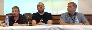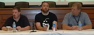 ![]() Bomis founders in 2006 Tim Shell, Jimmy Wales, and Michael E. Davis | |