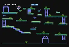 Bounty Bob Strikes Back! is the sequel to Miner 2049er published in 1985 [1] for Atari 8-bit computers. The game adds a pseudo-3D look to the platforms and increases the level count from 10 to 25. As with the original, the Atari 8-bit version was released on ROM cartridge.[2] A port for the Atari 5200 was released the same year, followed by versions for the Commodore 64, Amstrad CPC, and ZX Spectrum also in 1985.