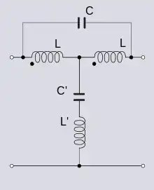 The four component values of the network provide four degrees of freedom in the design. It is required from image theory (see Zobel network) that the L/C branch and the L'/C' branch are the dual of each other (ignoring the transformer action) which provides two parameters for calculating component values. These are