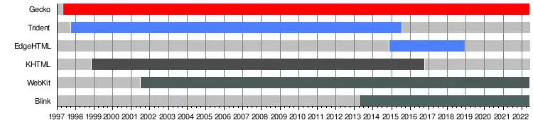 Only the duration of active development is shown, which is when relevant new Web standards continue to be added to the engine.