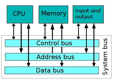 The simplest system bus has completely separate input data lines, output data lines, and address lines. To reduce cost, most microcomputers have a bidirectional data bus, re-using the same wires for input and output at different times.[5]