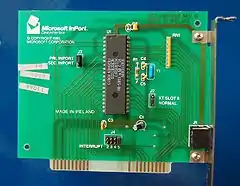 ![]() A Microsoft InPort bus mouse adapter, in the form of an 8-bit ISA (XT-bus) card | |||