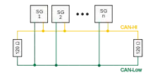 ISO 11898-2, also called high-speed CAN (bit speeds up to 1 Mbit/s on CAN, 5 Mbit/s on CAN-FD), uses a linear bus terminated at each end with a 120 Ω resistor.