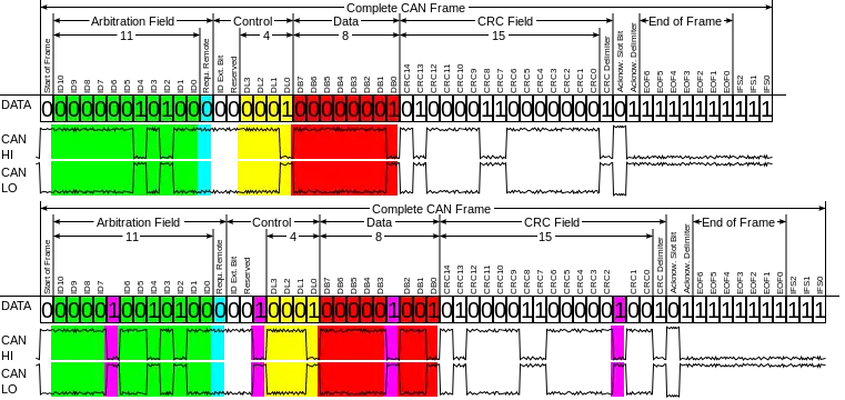 - Receiving: the CAN controller stores the received serial bits from the bus until an entire message is available, which can then be fetched by the host processor (usually by the CAN controller triggering an interrupt).