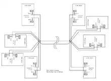 All nodes are connected to each other through a physically conventional two-wire bus. The wires are a twisted pair with a 120 Ω (nominal) characteristic impedance.