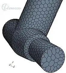 The first release of STAR-CCM+ included the world's first commercially available polyhedral meshing algorithm.[14] The use of a polyhedral mesh has proven to be more accurate for fluid-flow problems than a hexahedral or tetrahedral mesh of a similar size (number of cells),[15] but is considerably more difficult to create.[15]
