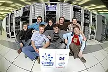The CERN openlab concept started in 2001 led by Manuel Delfino, and since 2003 it has run in successive phases of three years.[4] During CERN openlab I (2003-2005) an advanced prototype called opencluster was developed.[2] CERN openlab II (2006-2008) focused on various domains such as platforms, databases, grid computing, security and networks.[5] This work was continued by CERN openlab III (2009-2011) which also hosted projects with emphasis on technologies and services relevant to CERN and its partners.[6] Later, CERN openlab IV (2012-2014) paid particular attention to cloud computing, business analytics, the next generation of hardware, and security for large numbers of network devices.[7]