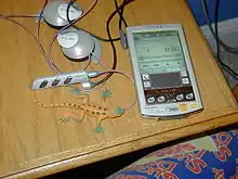 ![]() The CLIÉ N760C Audio with its included headphones and the Audio Player program. | |