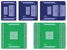 The specification defines 5 module sizes: The sizes A, B and C are typical Client Type sizes.
