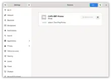 In GNOME starting from GNOME 3, CUPS printing has been handled in the Settings application, which is part of the GNOME Core Applications. The GUI can add CUPS printers and manage CUPS printers and queues.[40] Before GNOME 3, the GNOME Print Settings (formerly called CUPS Manager) were used to perform these tasks.[41]
