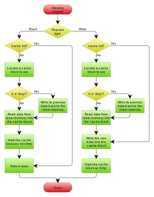 A write-back cache is more complex to implement since it needs to track which of its locations have been written over and mark them as dirty for later writing to the backing store. The data in these locations are written back to the backing store only when they are evicted from the cache, a process referred to as a lazy write. For this reason, a read miss in a write-back cache will often require two memory backing store accesses to service: one for the write back, and one to retrieve the needed data. Other policies may also trigger data write-back. The client may make many changes to data in the cache, and then explicitly notify the cache to write back the data.