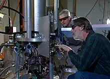 The caesium standard is a primary frequency standard in which the photon absorption by transitions between the two hyperfine ground states of caesium-133 atoms is used to control the output frequency. The first caesium clock was built by Louis Essen in 1955 at the National Physical Laboratory in the UK.[1] and promoted worldwide by Gernot M. R. Winkler of the United States Naval Observatory.