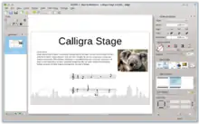 | Stage | A presentation program. It was removed in Calligra 3.0,[50] but returned in Calligra 3.2.[51] | |