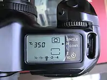 The T90 introduced features still used on SLR cameras today. While the use of a LCD screen on the top of the camera's right hand side was not new for the T90 – it was introduced on the T70 – the T90 refined it to show even more camera information. A control wheel is located behind the shutter release and convenient for the right index finger is used to adjust most camera settings in conjunction with other buttons located for the right thumb and on the left-hand side of the camera; again, this design is still used in Canon's digital SLRs in current production.