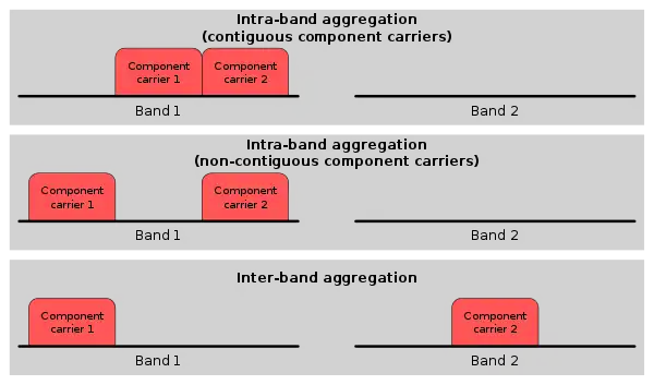 - The most complex case is when the component carriers lie in different frequency band. This is called inter-band carrier aggregation applied to heterogeneous networks.[4]