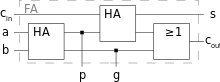 The carry-skip optimization problem for variable block sizes and multiple levels for an arbitrary device process node was solved by Thomas W. Lynch.[2] This reference also shows that carry-skip addition is the same as parallel prefix addition and is thus related to, and for some configurations identical to the Han–Carlson,[3][4] the Brent–Kung,[5] the Kogge-Stone adder[6] and a number of other adder types.