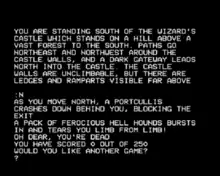 Castle of Riddles is a text adventure released by Acornsoft for the BBC Micro (in 1982) and Acorn Electron (1984) home computers. The game was written by Peter Killworth and was one of a series of text adventures written for, or ported to the BBC Micro by the same author (others including Countdown to Doom and Philosopher's Quest). As with all such games, only text is used. The player must use a simple 'verb-noun' format (e.g. 'Go North', 'Get lamp') to control the game. Unlike Killworth's other Acornsoft adventures, Castle of Riddles was not updated and reissued by Topologika so became unavailable after 1985 when Acorn Computers (parent company of Acornsoft) pulled out of the games publishing market. Some of the puzzles however were included in the Topologika version of Philosopher's Quest.