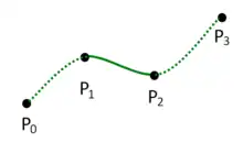 In computer graphics, the centripetal Catmull–Rom spline is a variant form of the Catmull–Rom spline, originally formulated by Edwin Catmull and Raphael Rom,[1] which can be evaluated using a recursive algorithm proposed by Barry and Goldman.[2] It is a type of interpolating spline (a curve that goes through its control points) defined by four control points , with the curve drawn only from to .