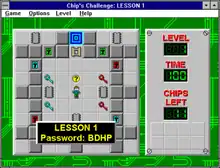 Chip's Challenge is a top-down tile-based puzzle video game originally published in 1989 by Epyx as a launch title for the Atari Lynx. It was later ported to several other systems and was included in the Windows 3.1 bundle Microsoft Entertainment Pack 4 (1992), and the Windows version of the Best of Microsoft Entertainment Pack (1995), where it found a much larger audience.[1]