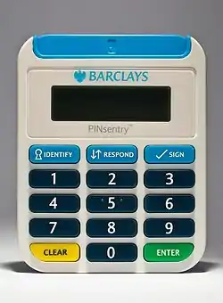 - ↑ Leyden, John. "Barclays deploys PINsentry to fight fraud". www.theregister.com. Retrieved 2021-04-30.