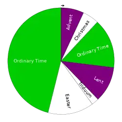 In 567, the Council of Tours put in place the season of Christmastide, proclaiming "the twelve days from Christmas to Epiphany as a sacred and festive season, and established the duty of Advent fasting in preparation for the feast."[5][53] This was done in order to solve the "administrative problem for the Roman Empire as it tried to coordinate the solar Julian calendar with the lunar calendars of its provinces in the east."[54][55][56]