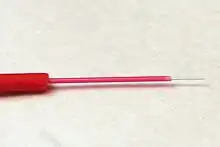 - A pen-shaped scribe (also known as diamond-tip scribe or diamond wedge scribe) looks like a ballpoint pen but has a small wedge tip made of diamond or other hard material. This tool is used with the "scratch and pull" technique. First, the fiber is scribed perpendicular to its length. The fiber is then pulled, which breaks at the scribe. This tool requires an experienced operator to produce good cleaves.