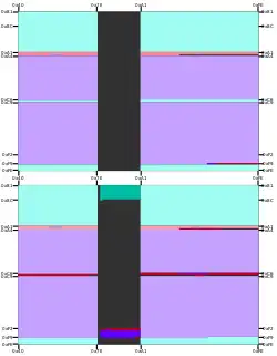 IBM's CCSID 950 comprises single byte code page 1114 (CCSID 1114) and double byte code page 947 (CCSID 947),[4][5][6] and, while also a Big5 variant, is somewhat different from Microsoft's code page 950, incorporating some of the ETEN extensions for lead bytes 0xA3,[7] 0xC6,[3][8] 0xC7[9] and 0xC8,[3][10] while omitting those with lead byte 0xF9 (which Microsoft includes), mapping them instead to the Private Use Area as user-defined characters.[3][11] It also includes two non-ETEN extension regions with trail bytes 0x81–A0, i.e. outside the usual Big5 trail byte range but similar to the Big5+ trail byte range: area 5 has lead bytes 0xF2–F9 and contains IBM-selected characters, while area 9 has lead bytes 0x81–8C and is a user-defined region.[12]