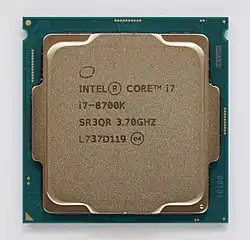 Coffee Lake is Intel's codename for its eighth-generation Core microprocessor family, announced on September 25, 2017.[5] It is manufactured using Intel's second 14 nm process node refinement.[6] Desktop Coffee Lake processors introduced i5 and i7 CPUs featuring six cores (along with hyper-threading in the case of the latter) and Core i3 CPUs with four cores and no hyperthreading.