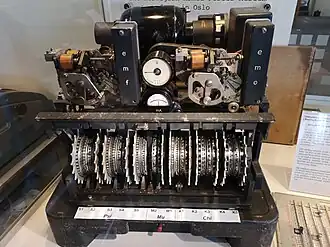 Tommy Flowers MBE[lower-alpha 4] was a senior electrical engineer and Head of the Switching Group at the Post Office Research Station at Dollis Hill. Prior to his work on Colossus, he had been involved with GC&CS at Bletchley Park from February 1941 in an attempt to improve the Bombes that were used in the cryptanalysis of the German Enigma cipher machine.[34] He was recommended to Max Newman by Alan Turing, who had been impressed by his work on the Bombes.[35] The main components of the Heath Robinson machine were as follows.