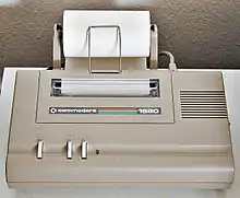 Commodore also produced the DPS-1101 daisy wheel printer, which produced letter quality print similar to a typewriter based on a Juki mechanism, and which typically cost more than the computer and floppy disk drive together. The DPS-1101 was large enough to accept A4 size paper in landscape orientation as well as A3 size paper in portrait orientation. The MPS-1000 dot matrix printer was introduced along with the C-128.[11] Commodore 1526 is a rebranded MPS 802.[12][13]