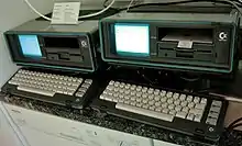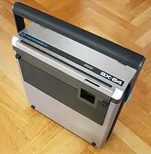 The Commodore SX-64, also known as the Executive 64, or VIP-64 in Europe, is a portable, briefcase/suitcase-size "luggable" version of the popular Commodore 64 home computer and the first color portable computer.[1]