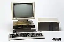 ![]() An example Compis system, showing two 5.25-inch floppy disk drives, keyboard, monitor and external hard disk drive | |