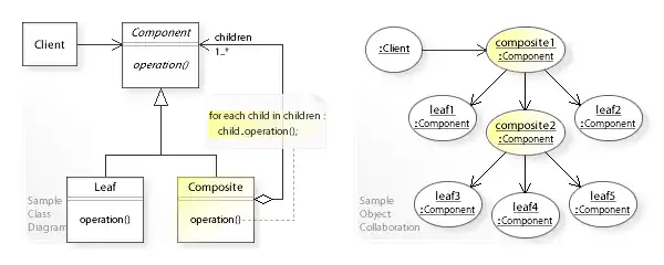 - ↑ "The Composite design pattern - Structure and Collaboration". w3sDesign.com. Retrieved 2017-08-12.