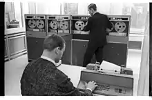 A computer operator is a role in IT which oversees the running of computer systems, ensuring that the machines, and computers are running properly.[1] The job of a computer operator as defined by the United States Bureau of Labor Statistics is to "monitor and control ... and respond to ... enter commands ... set controls on computer and peripheral devices. This Excludes Data Entry."[2]