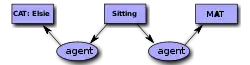 [Cat Elsie] [Sitting *x] [Mat *y] (agent ?x Elsie) (location ?x ?y)