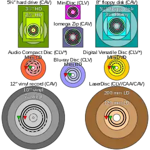 In optical storage, constant angular velocity (CAV) is a qualifier for the rated speed of any disc containing information, and may also be applied to the writing speed of recordable discs. A drive or disc operating in CAV mode maintains a constant angular velocity, contrasted with a constant linear velocity (CLV).